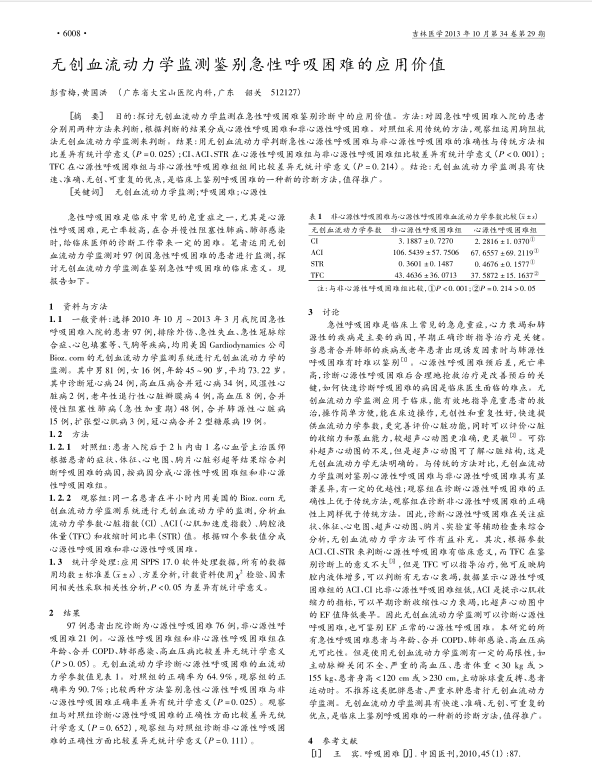無創(chuàng)血流動力學(xué)監(jiān)測鑒別急性呼吸困難的應(yīng)用價值