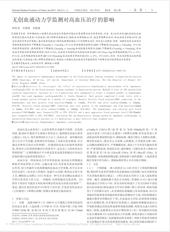 無創(chuàng)血液動(dòng)力學(xué)監(jiān)測對高血壓治療的影響