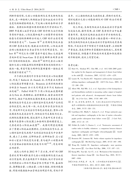 心阻抗血流圖在充血性心力衰竭治療初期的臨床價(jià)值