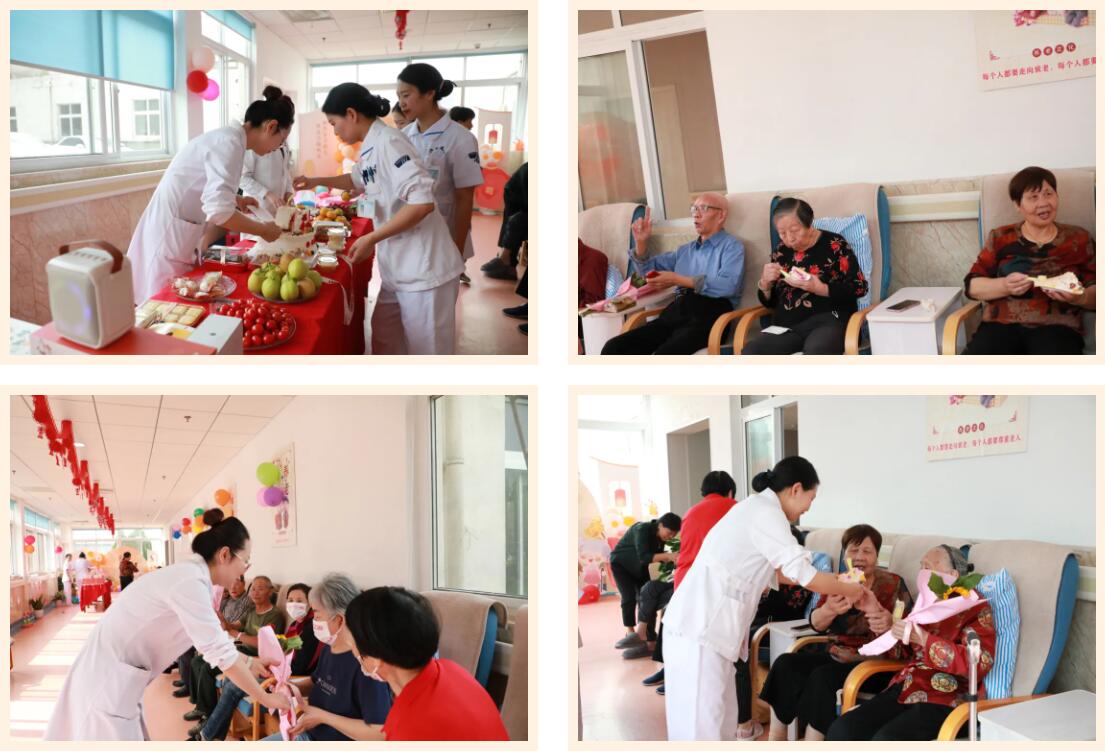 頤養(yǎng)院的醫(yī)護(hù)人員們在護(hù)理部領(lǐng)導(dǎo)的帶領(lǐng)下帶著滿心的關(guān)懷與溫情,為院內(nèi)的老人們送去了精心鮮花和水果糕點。工作人員們拉著老人的手,耐心詢問他們的身體狀況,以及是否有什么特別的需要或愿望,那份耐心與真誠,讓老人們臉上洋溢著幸福的笑容。