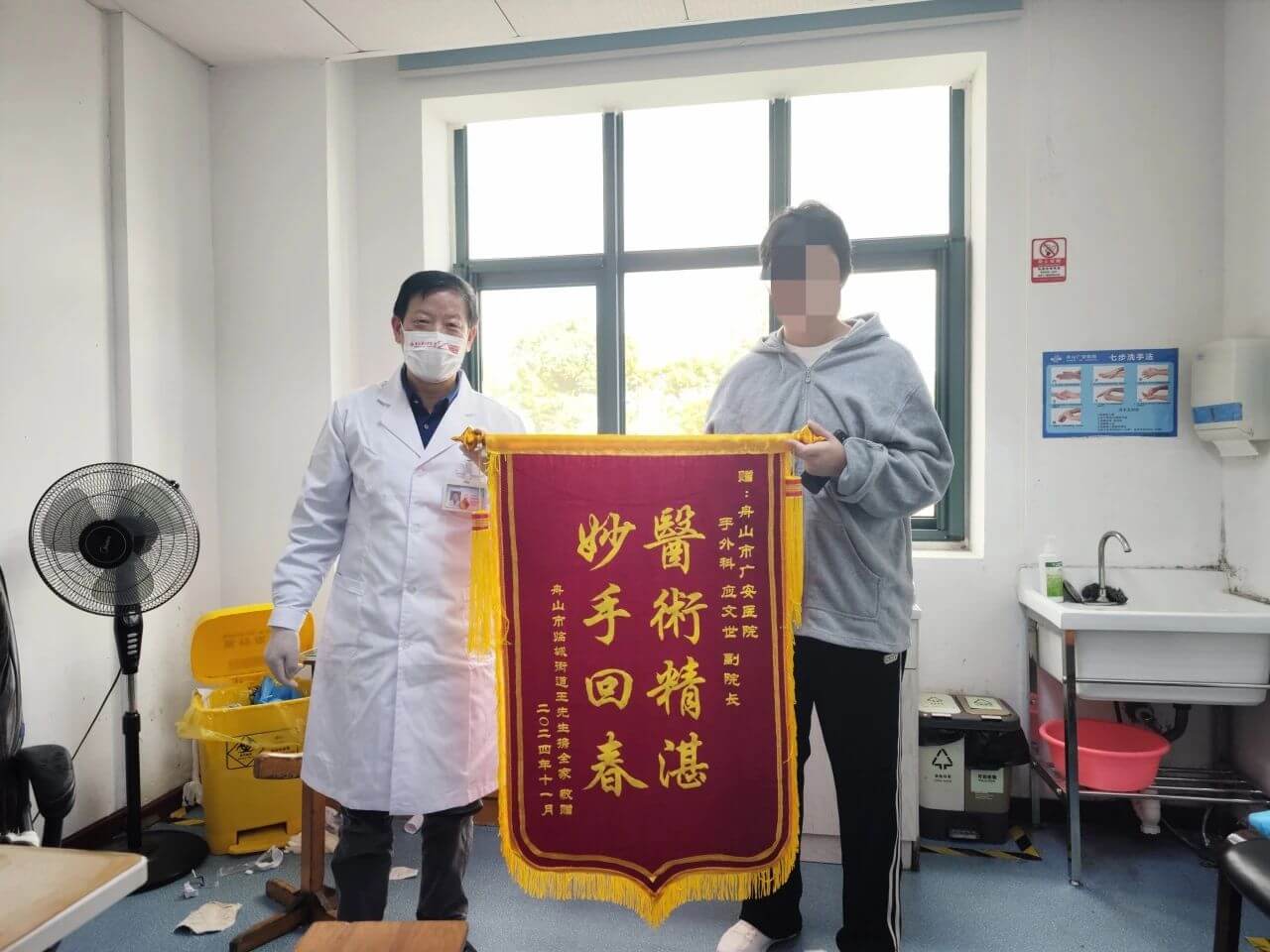 這次送錦旗的患者是一位學(xué)生,在高強(qiáng)度的學(xué)習(xí)壓力下,經(jīng)常通過用錘子敲擊墻面釋放壓力,這一行為舉動(dòng)導(dǎo)致其手受傷。
