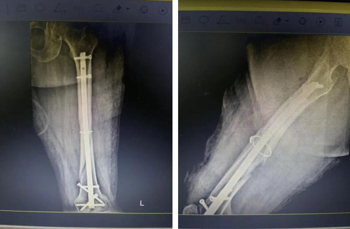 經(jīng)檢查確診為 “右股骨多段粉碎性骨折”??紤]到俞奶奶年事已高,身體機(jī)能衰退,當(dāng)?shù)蒯t(yī)院認(rèn)為手術(shù)風(fēng)險(xiǎn)極大,建議轉(zhuǎn)院治療。