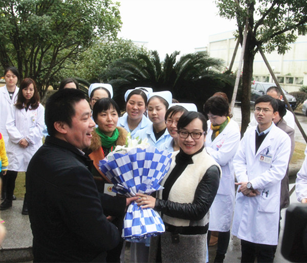 歡送會(huì)上,舟山市紅十字會(huì)秘書(shū)長(zhǎng)龔青云、普陀區(qū)紅十字會(huì)常務(wù)副會(huì)長(zhǎng)周艷,海氏集團(tuán)總經(jīng)理焦忠偉,廣安醫(yī)院院長(zhǎng)郭維杰及眾多醫(yī)護(hù)人員紛紛出席,在歡送她的同時(shí),也表達(dá)了對(duì)她的敬仰之情。周艷副會(huì)長(zhǎng)表示,造血干細(xì)胞捐獻(xiàn)是一項(xiàng)無(wú)限光榮的事跡,我們要感謝她的無(wú)私奉獻(xiàn)精神。龔青云秘書(shū)長(zhǎng)向應(yīng)娜獻(xiàn)上了一束美麗的鮮花,表示她的心靈和鮮花一樣美麗。