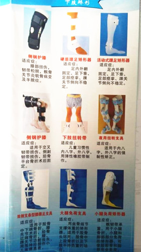 矯形器是指裝配于人體四肢、軀干等部位的體外器具的總稱,其目的是為了預(yù)防或矯正四肢、軀干的畸形或治療骨關(guān)節(jié)及神經(jīng)肌肉疾病并代償其功能。根據(jù)安裝部位分上肢矯形器、下肢矯形器和脊柱矯形器三大類。及其本功能為:1、穩(wěn)定與支持;2、固定與矯正;3、保護(hù)與免負(fù)荷;4、代償與助動(dòng)。