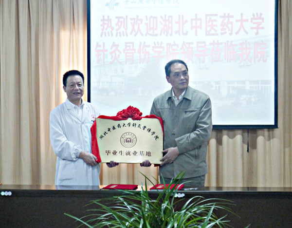5月10日上午,我院舉行“湖北中醫(yī)藥大學(xué)針灸骨傷學(xué)院畢業(yè)生就業(yè)基地”簽約授牌儀式,這是湖北中醫(yī)藥大學(xué)在我市設(shè)立的首個(gè)畢業(yè)生就業(yè)基地。湖北中醫(yī)藥大學(xué)針灸骨傷學(xué)院章漢平院長(zhǎng)、汪海洋書記及我院院領(lǐng)導(dǎo)出席授牌簽約儀式。