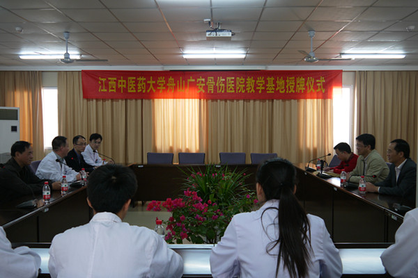 11月6日,江西中醫(yī)藥大學(xué)紀(jì)委書記劉青一行三人來我院參觀交流。雙方就醫(yī)院基本情況、中醫(yī)藥特色優(yōu)勢以及實(shí)習(xí)生學(xué)習(xí)生活情況進(jìn)行了座談。劉書記對我院實(shí)習(xí)生教學(xué)工作給予了肯定及感謝,并對學(xué)校與教學(xué)基地聯(lián)系交流等問題提出了建議。最后雙方負(fù)責(zé)人為“江西中醫(yī)藥大學(xué)教學(xué)醫(yī)院”揭牌。