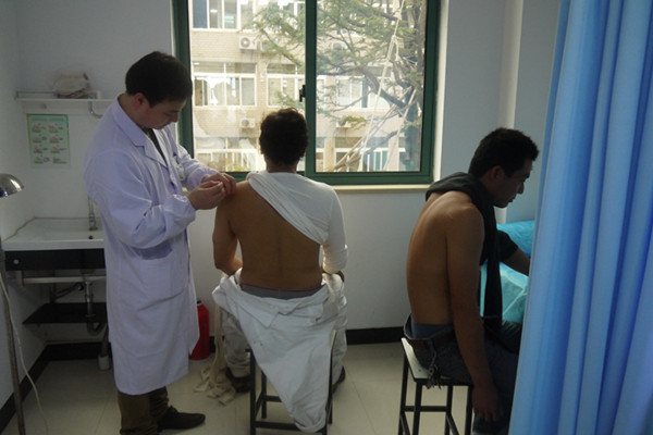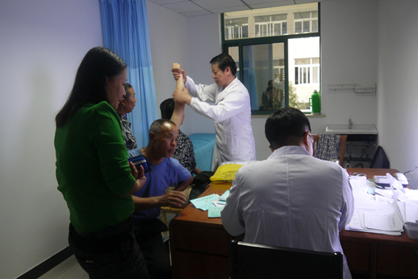 大病區(qū)主任兼手外科應(yīng)文世主任為病人看病