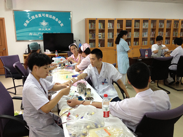 醫(yī)護(hù)人員積極參加獻(xiàn)血