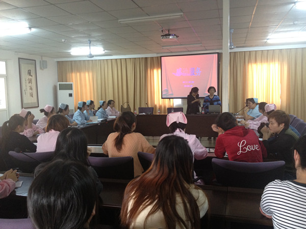 浙江醫(yī)院原護(hù)理部主任李津津?yàn)槲覀冡t(yī)院的護(hù)士們進(jìn)行了有關(guān)感動(dòng)服務(wù)的講座