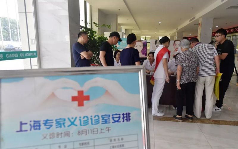 活動現(xiàn)場,廣安醫(yī)院和上海專家組成“3+1服務(wù)小組”,即每位專家配一名廣安醫(yī)生、一名護(hù)士、一名導(dǎo)醫(yī),為每一位如約而來的患者提供優(yōu)質(zhì)的義診服務(wù)。
