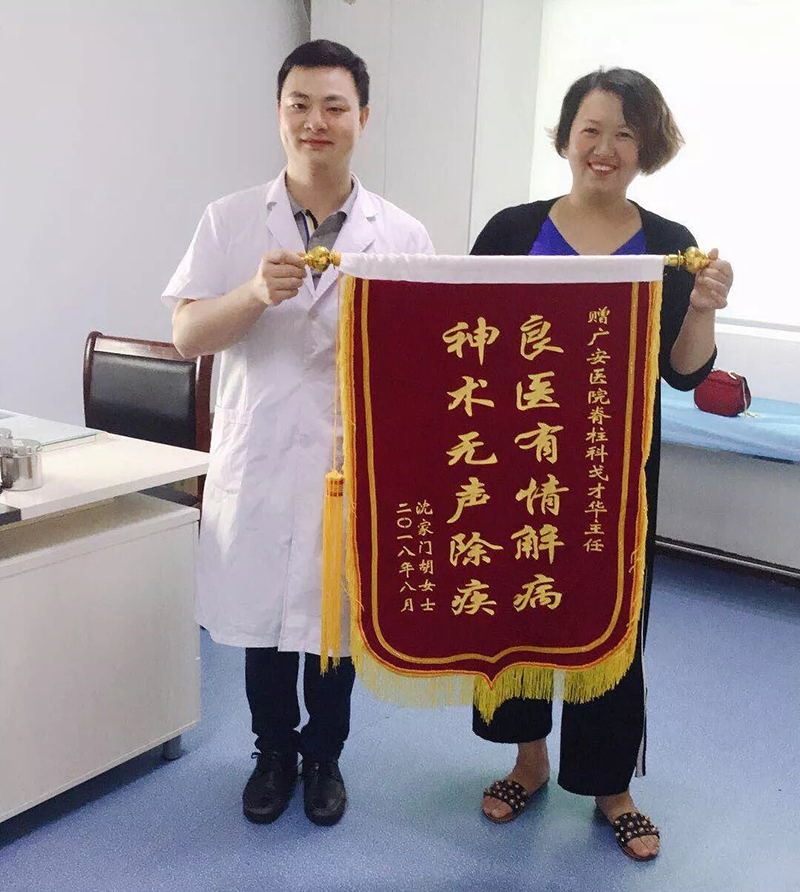 在醫(yī)患矛盾日益突出、醫(yī)患關(guān)系日益緊張的今天,此項(xiàng)殊榮是脊柱科全體醫(yī)護(hù)人員的精神鼓舞。脊柱科全體醫(yī)護(hù)人員將以這面錦旗為新起點(diǎn),創(chuàng)醫(yī)院發(fā)展,保人民健康;與全院同仁一起攜手撐起生命之重托,將一個(gè)又一個(gè)脆弱的生命之燭重新燃起。