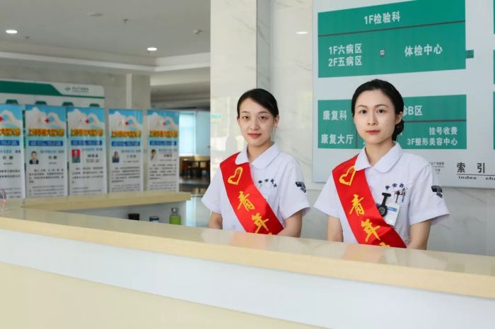 每當(dāng)患者走進醫(yī)院的服務(wù)大廳,身披“青年文明志愿者”綬帶的導(dǎo)醫(yī)員就會面帶微笑地走過來,主動詢問。