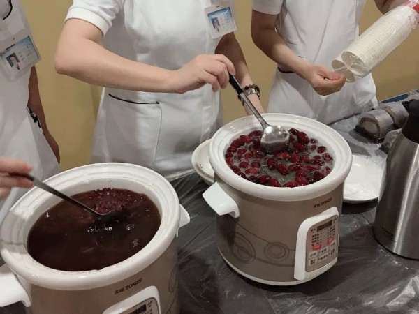 為了讓參加獻(xiàn)血的人能及時(shí)得到營養(yǎng)補(bǔ)充,醫(yī)院為奉獻(xiàn)愛心的醫(yī)務(wù)人員精心準(zhǔn)備了紅棗湯、紅豆粥、小甜品等補(bǔ)給食物,為活動(dòng)保駕護(hù)航。