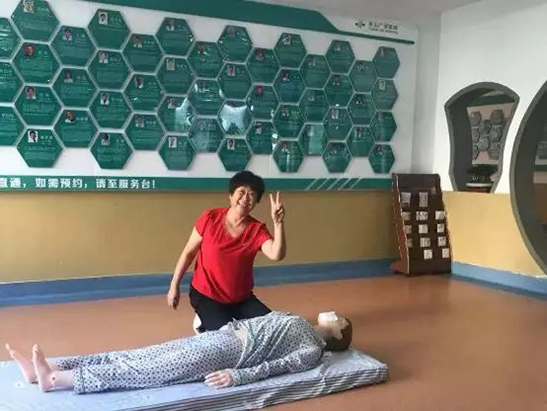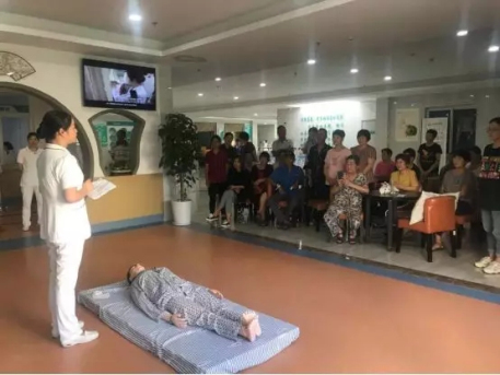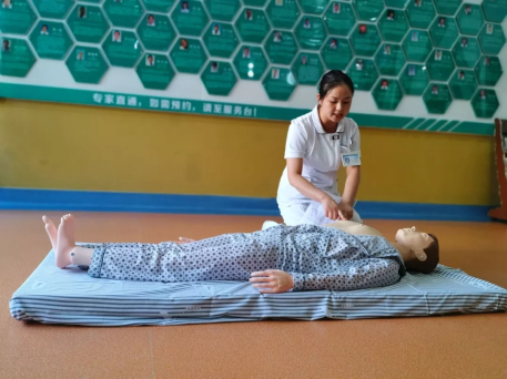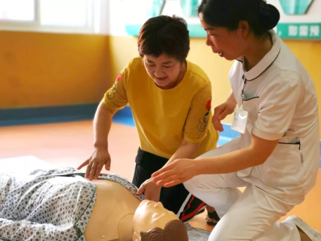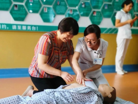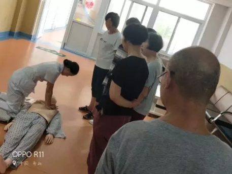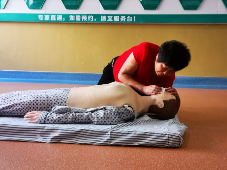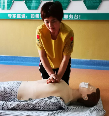 在醫(yī)護人員通俗易懂、形象逼真的講解后,部分家屬及患者現(xiàn)場體驗了心肺復(fù)蘇的操作流程,通過耐心指導(dǎo),部分操作者能很好的完成此次操作。