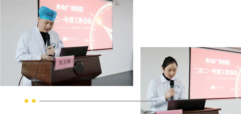 1月8日下午,舟山廣安醫(yī)院順利召開2021年度年終工作會議。醫(yī)院院務(wù)會成員、主管以上管理人員及各科室骨干人員70余人參加會議。會議由醫(yī)院副院長鐘琦靜主持。