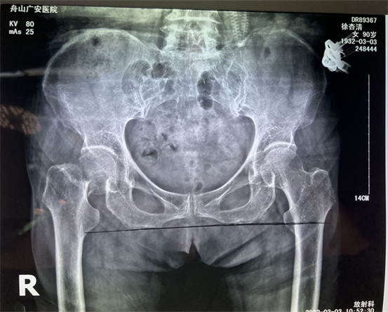 在舟山廣安醫(yī)院辦理住院后,經過白黎明副主任和骨科中心羅軍主任的系統檢查和全面評估后,決定為患者做了微創(chuàng)智能DAA人工髖關節(jié)置換。