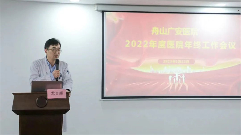 1月12日,舟山廣安醫(yī)院順利召開2022年度年終工作會議。醫(yī)院院務會成員、主管以上管理人員及各科室骨干人員70余人參加會議。