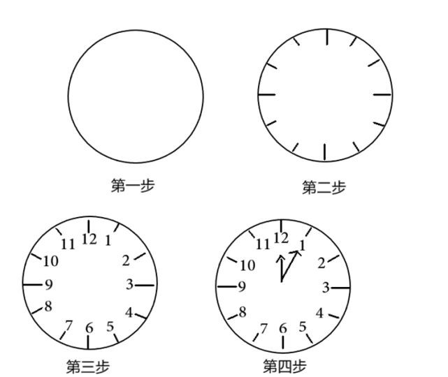 在白紙上畫(huà)一個(gè)鐘表,依次寫(xiě)上鐘點(diǎn)數(shù)字,并標(biāo)出時(shí)間11:10的指針?lè)较?。而判斷?biāo)準(zhǔn)則需要符合三點(diǎn):