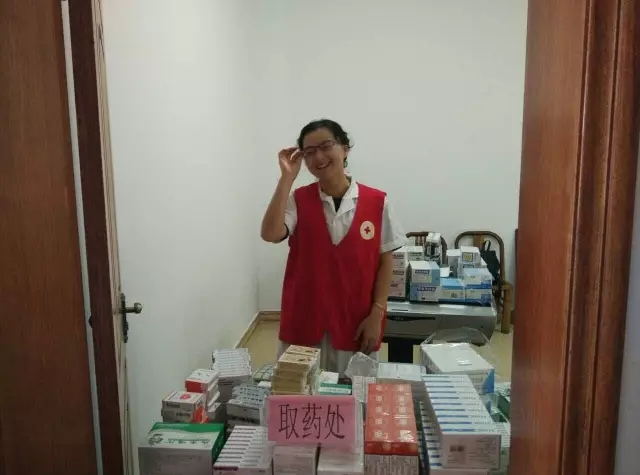 取藥處的志愿者一直笑對村民,把藥分派到村民手中,還囑咐他們按時吃藥以及注意事項。