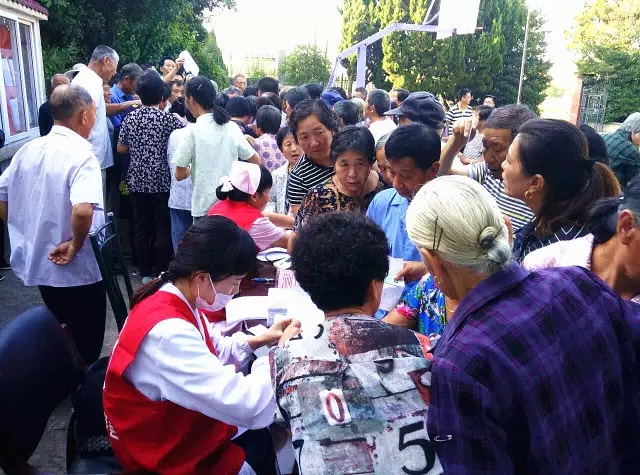 12點45分,志愿者們抵達現(xiàn)場,不出意料,活動現(xiàn)場已經(jīng)被社區(qū)工作人員安排妥當,許多村民已經(jīng)前來排隊就診。醫(yī)護人員放好醫(yī)療器械,馬上為村民們看診、答疑解惑,并宣傳衛(wèi)生知識。