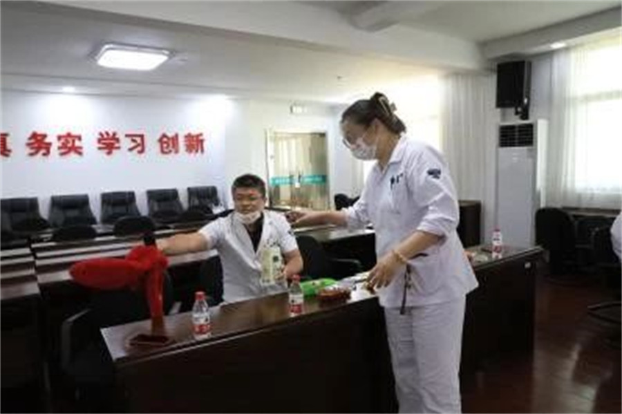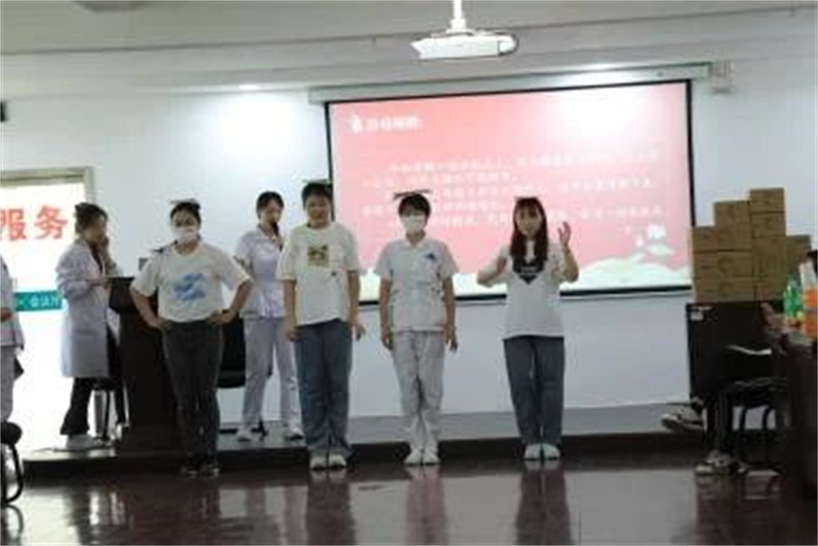 這一次題目內(nèi)容涵蓋醫(yī)療專業(yè)名詞、成語、古詩,難度系數(shù)可不是一般的大,看著比劃者手舞足蹈,猜詞者卻一頭霧水,場下觀眾可是比臺上參賽者都著急,有人出主意,有人大笑,場面熱鬧非凡。最終裴燕和鄧佳婧憑借多年默契,拿下全場最佳。