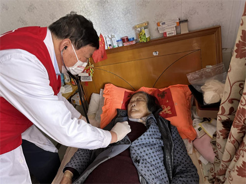 有幾位患者因長期臥床腿腳不便,不能來到義診現(xiàn)場,副主任醫(yī)師虞晉卿就來到了患者家中,為他們上門提供醫(yī)療咨詢服務(wù)。