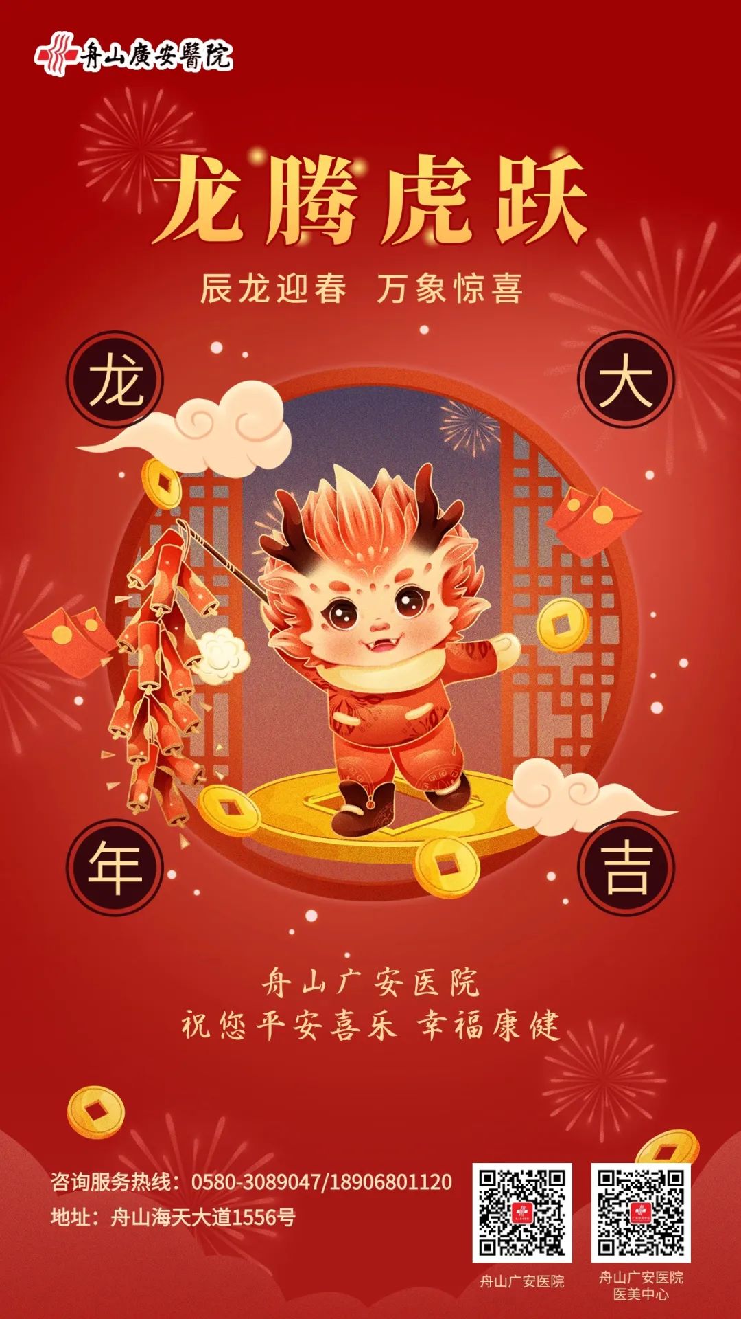 金龍獻瑞,祥云環(huán)繞,廣安醫(yī)院內(nèi)科恭祝大家新年快樂!龍飛鳳舞,龍馬精神,身體健康,闔家幸福!