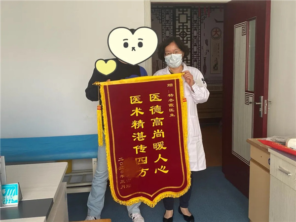 5月11日,在于女士再一次來(lái)?xiàng)疃坚t(yī)生門診復(fù)診時(shí),特意制作了一面錦旗送予楊冬霞醫(yī)生。“這三年來(lái)我真的吃也吃不好,睡也睡不好。感謝楊醫(yī)生的高超醫(yī)術(shù),讓我重新做回了正常的女人。謝謝謝謝!”于女士連聲感謝!