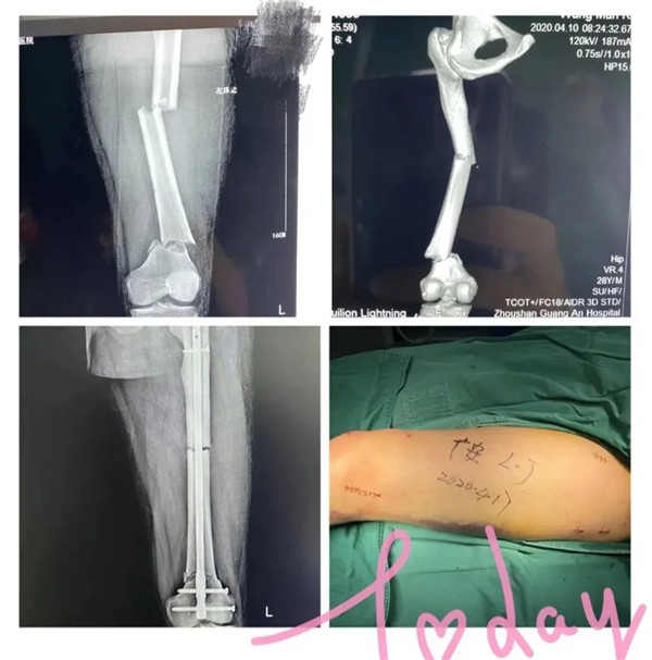 受傷的是家住城北的年輕小伙小王,早上騎電動車去上班速度太快而不慎摔傷。急診醫(yī)生初步檢查,判斷是大腿骨骨折,立即予以拍片檢查。結果顯示:左股骨多段粉碎性骨折。小王左腿股骨竟斷成三截 !須做手術治療。病人和家屬看到片子后,都有點嚇傻了,急得語無倫次,不斷地追問醫(yī)生:“醫(yī)生,這該怎么辦呢?骨頭都斷這樣了,還能接好嗎?……”醫(yī)生趕緊安撫病人和家屬:“到了我們醫(yī)院,您們放心好了。等檢查完善后,我們會盡快施行手術治療的”。小王當即辦理了住院手續(xù)。