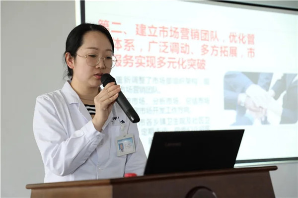 隨后,市場(chǎng)營(yíng)銷(xiāo)執(zhí)行委員會(huì)主任傅倍蕾,作了精彩的工作匯報(bào)。在接下來(lái)的工作中,各科室會(huì)繼續(xù)以昂揚(yáng)向上的精神面貌,精益求精的工作態(tài)度,全力提升科室醫(yī)療質(zhì)量水平,推動(dòng)醫(yī)院繼續(xù)實(shí)現(xiàn)高質(zhì)量發(fā)展。