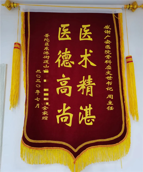 6月3日,在征得家屬同意,洋洋的身體符合手術(shù)指征后,洋洋接受了右鎖骨骨折切開復(fù)位內(nèi)固定術(shù),手術(shù)由應(yīng)文世主任主刀。術(shù)中可見右鎖骨呈粉碎性骨折,骨折端移位明顯。一個小時后,手術(shù)順利結(jié)束。術(shù)后,洋洋恢復(fù)良好,6月9日順利出院。一個月后,在來復(fù)查時,洋洋的媽媽帶來了一面錦旗送予應(yīng)文世主任及手外科周小君副主任,以感謝他們的高超技術(shù)及優(yōu)質(zhì)服務(wù)。