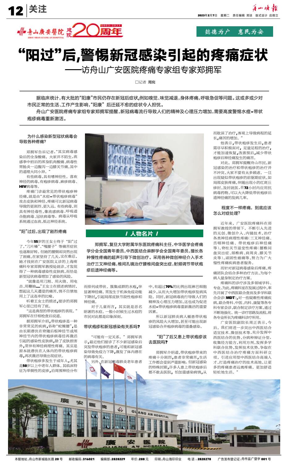 廣安人懷揣著對于醫(yī)療的敬畏和對舟山人的大愛,將以更加昂揚的姿態(tài)和海納百川的胸懷,不斷把學(xué)科建設(shè)和醫(yī)療技術(shù)水平推向更高的境界,服務(wù)舟山、造福社會。
