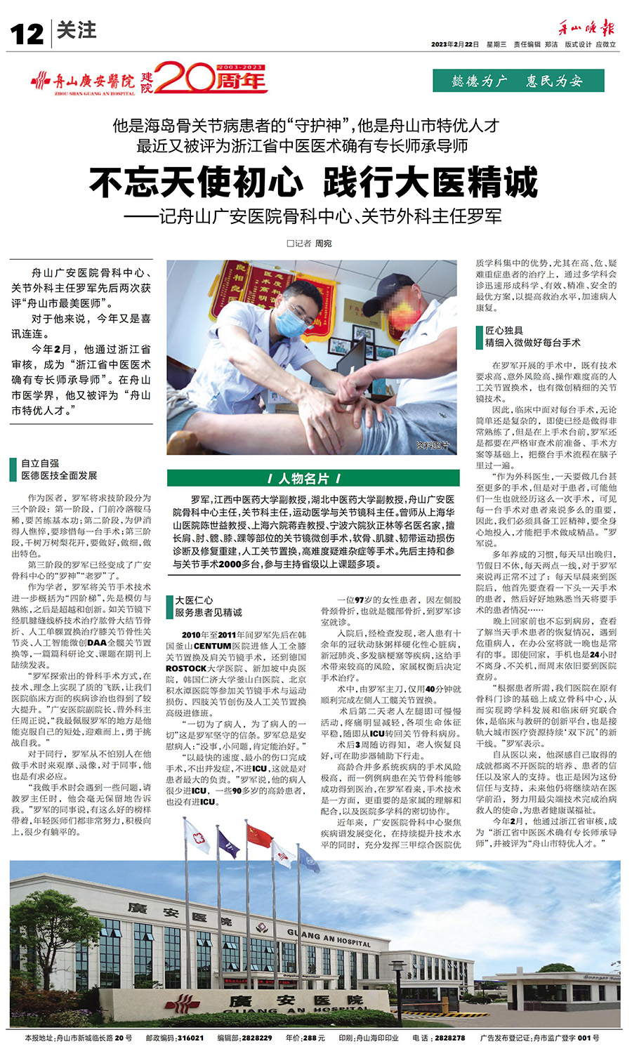 廣安人懷揣著對(duì)于醫(yī)療的敬畏和對(duì)舟山人的大愛,將以更加昂揚(yáng)的姿態(tài)和海納百川的胸懷,不斷把學(xué)科建設(shè)和醫(yī)療技術(shù)水平推向更高的境界,服務(wù)舟山、造福社會(huì)。