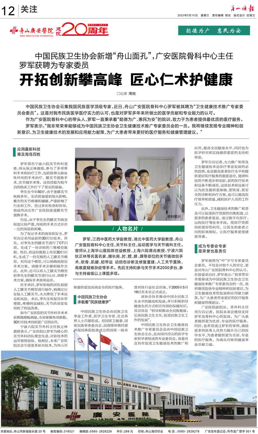 廣安人懷揣著對于醫(yī)療的敬畏和對舟山人的大愛,將以更加昂揚的姿態(tài)和海納百川的胸懷,不斷把學科建設(shè)和醫(yī)療技術(shù)水平推向更高的境界,服務舟山、造福社會。