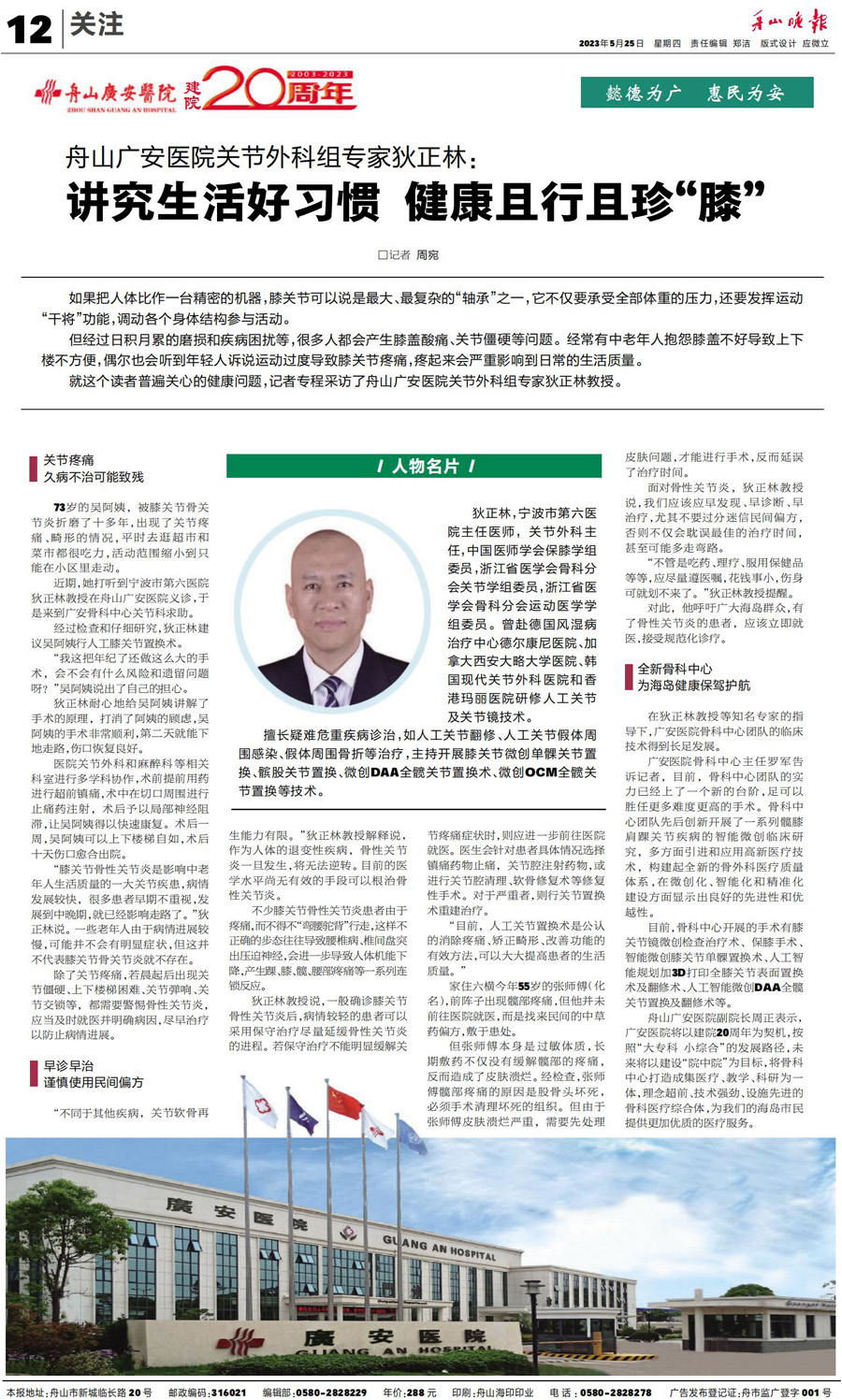 舟山廣安醫(yī)院關(guān)節(jié)外科組專家狄正林:講究生活好習(xí)慣 健康且行且珍"膝”