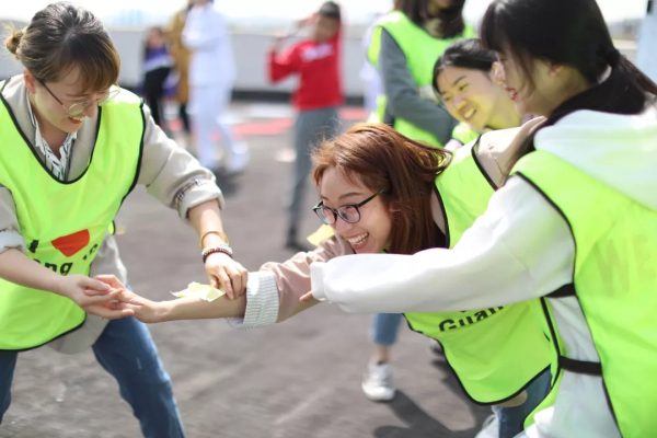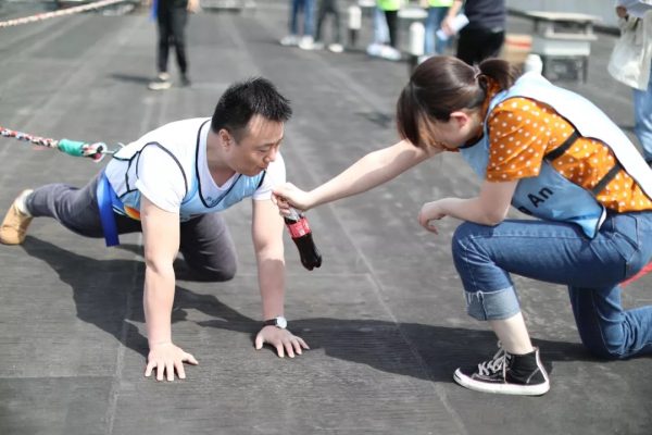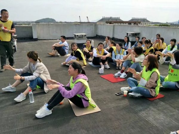 4月27日下午,陽光明媚,舟山廣安醫(yī)院行政樓屋頂上不時傳來歡聲笑語,50多名青年醫(yī)生和護士在這里參加春季趣味運動會。